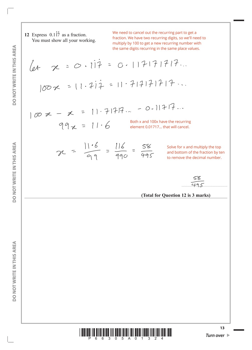A completed GCSE math non-calculator higher paper with detailed explanations on how to write model answers and get full marks in your exams.